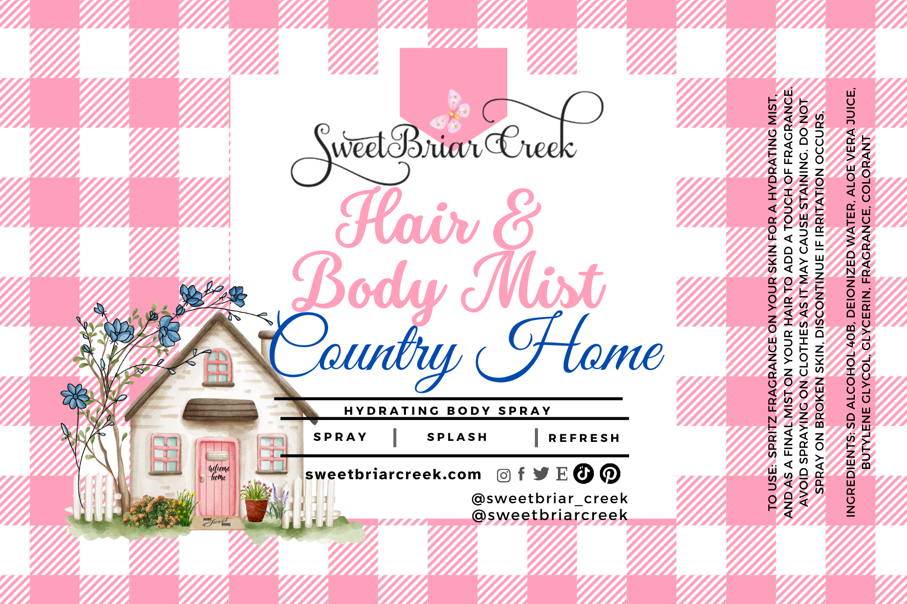 A fine fragrance mist body spray carefully formulated to leave skin feeling refreshed and lightly scented ,never greasy or sticky. Perfect  Layer your favorite SweetBriar Creek  perfume oil roll-on for a quick burst of fragrance.