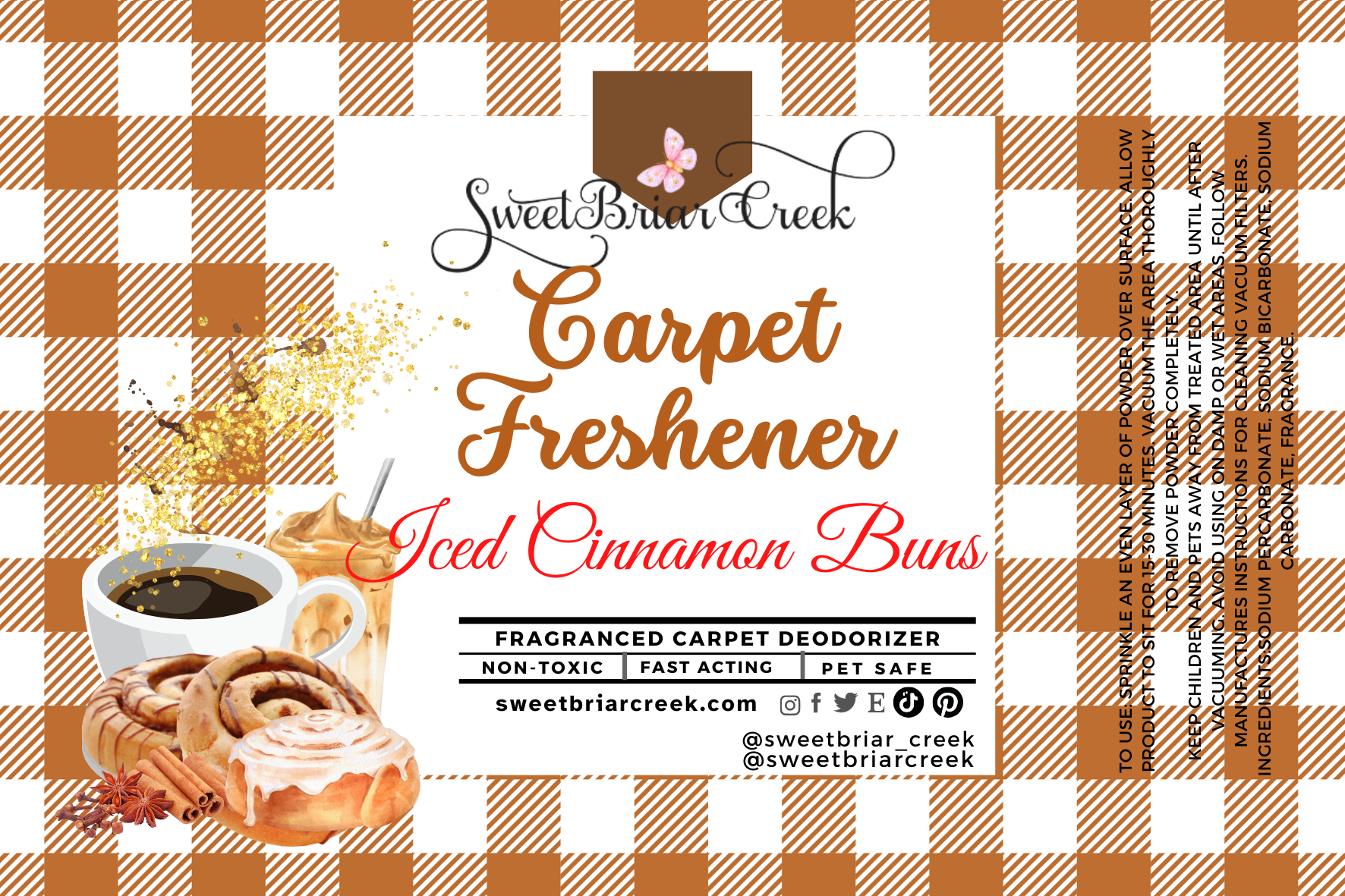 Deodorize and refresh your rugs, carpets, mattresses, upholstery and more with this easy to use carpet freshener. Sprinkle on surface, allow to set for 15-30 minutes and them vacuum as usual. Perfect for adding a delightful fragrance while you clean.