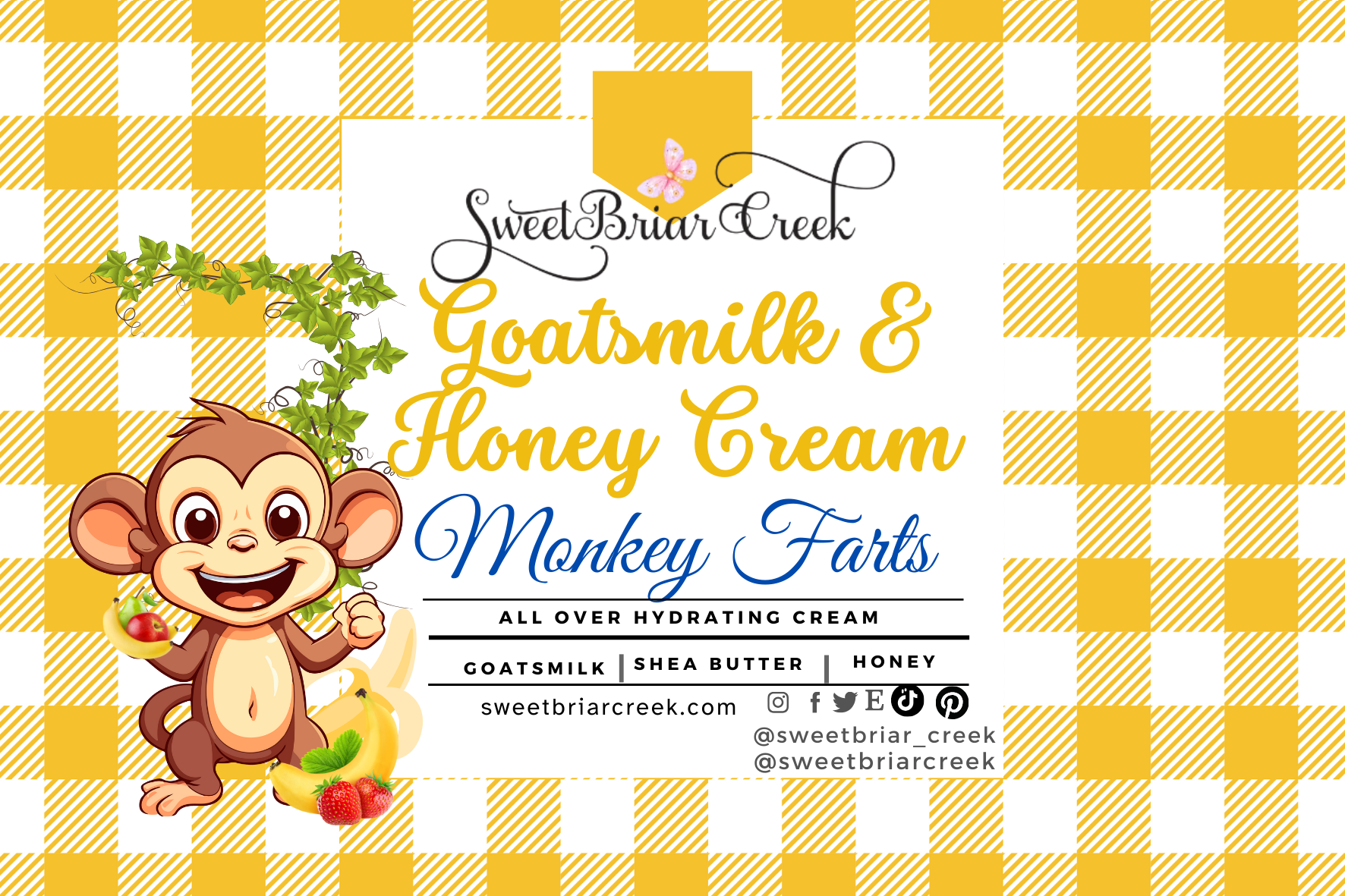 Water, Glyceryl Stearate, Isopropyl Myristate, Cetearyl Alcohol & Ceteareth-20, Stearic Acid, Caprylic/Capric Glycerides, Stearyl Alcohol, Glycerine Soja (Soybean) Oil, Butyrospermum Parkii (Shea) Butter, Diheptyl Succinate, Capryloyl Glycerin/Sebacic Acid Copolymer, Helianthus Annuus (Sunflower) Oil, Aloe Barbadensis Leaf Juice, Goat Milk Extract, Hydroxypropyltrimonium Honey, Methylparaben, Propylparaben, DMDM Hydantoin, Triisopropanolamine, Disodium EDTA.