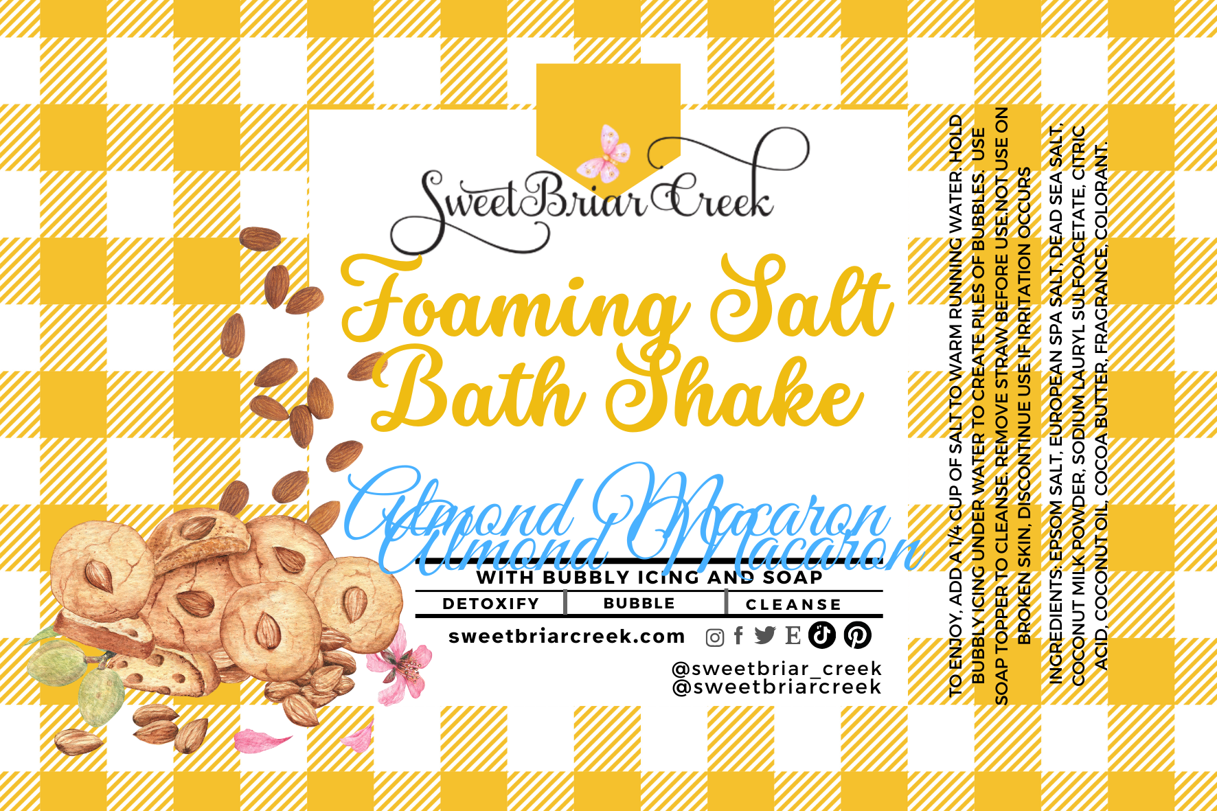 The Top is a Solid Bubble Bath for creating piles of fluffy bubbles and can be used with the salt soak or on its own. The sweet topper is a glycerin soap. Remove straw before use.