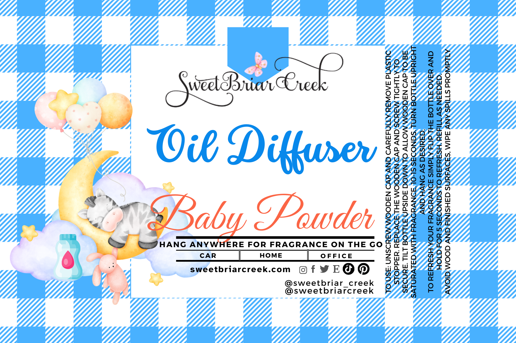 Enjoy your favorite fragrance everywhere you go with these adorable diffusers. These are perfect for cars, closets and anywhere you like. Our Oils are carefully blended to be Phthalate-free in addition to being free of other potentially hazardous chemicals found in cheaper fragrances.