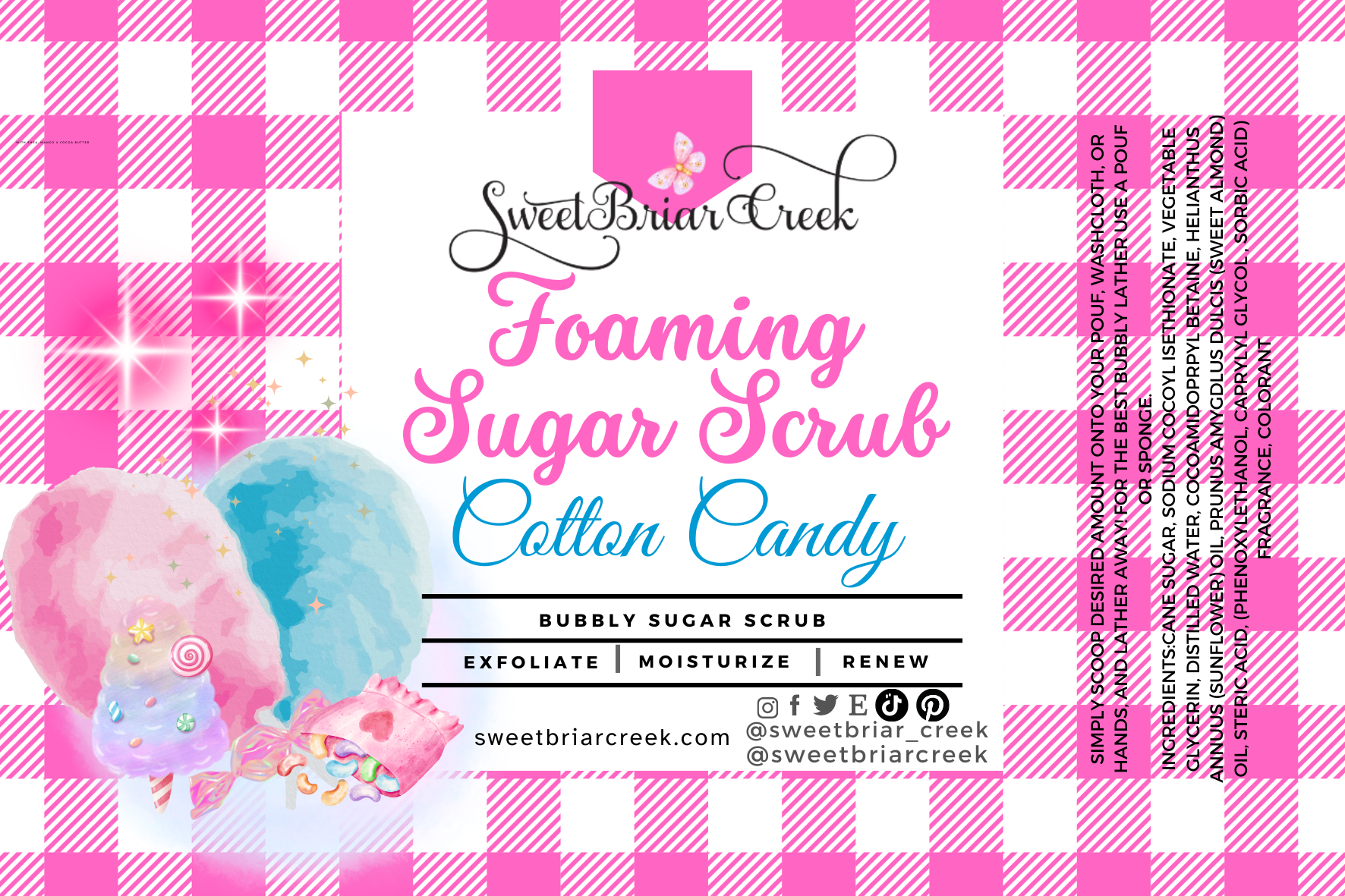 Made with premium cleansers & natural skin loving moisturizers. You will love the light fluffy texture and the sweet exfoliation  & your skin will too! Gentle enough for every day use.