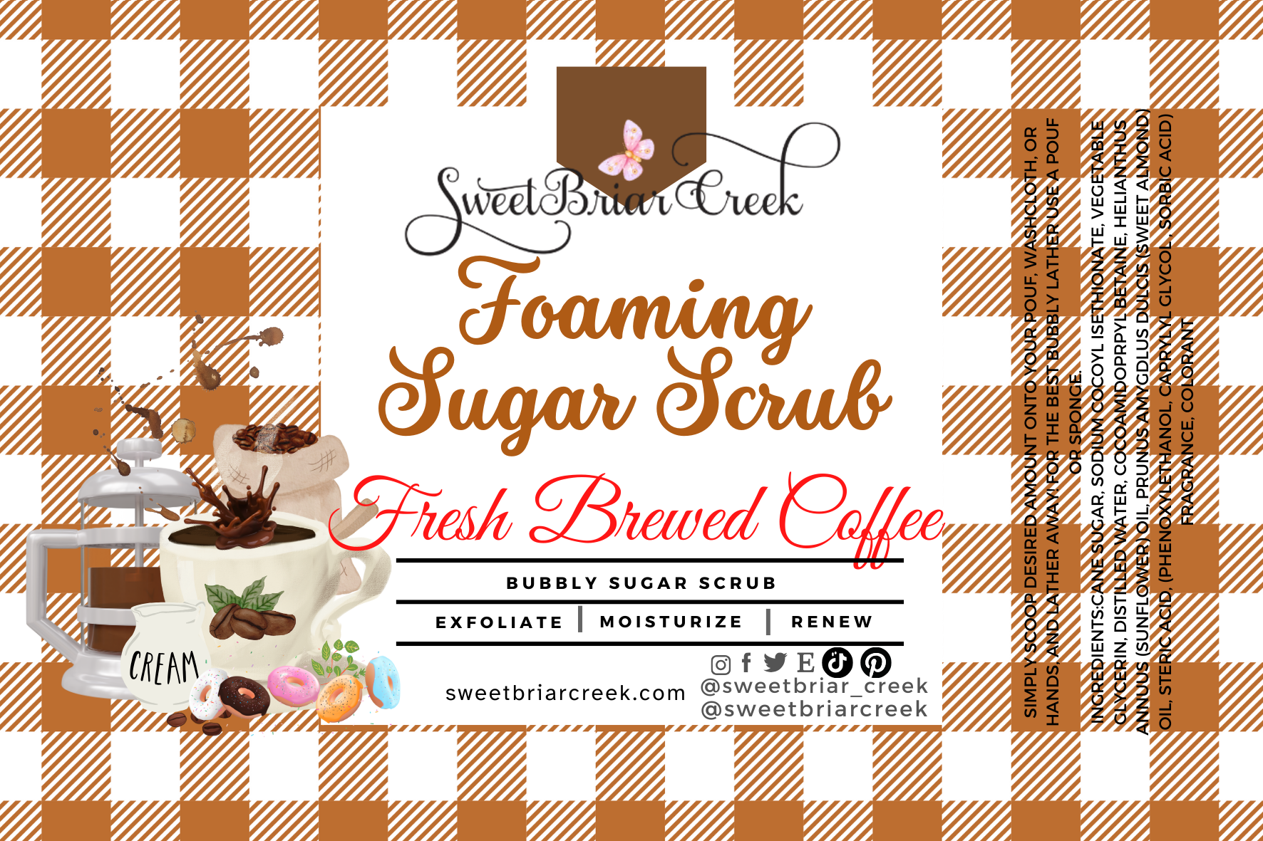 Made with premium cleansers & natural skin loving moisturizers. You will love the light fluffy texture and the sweet exfoliation  & your skin will too! Gentle enough for every day use.