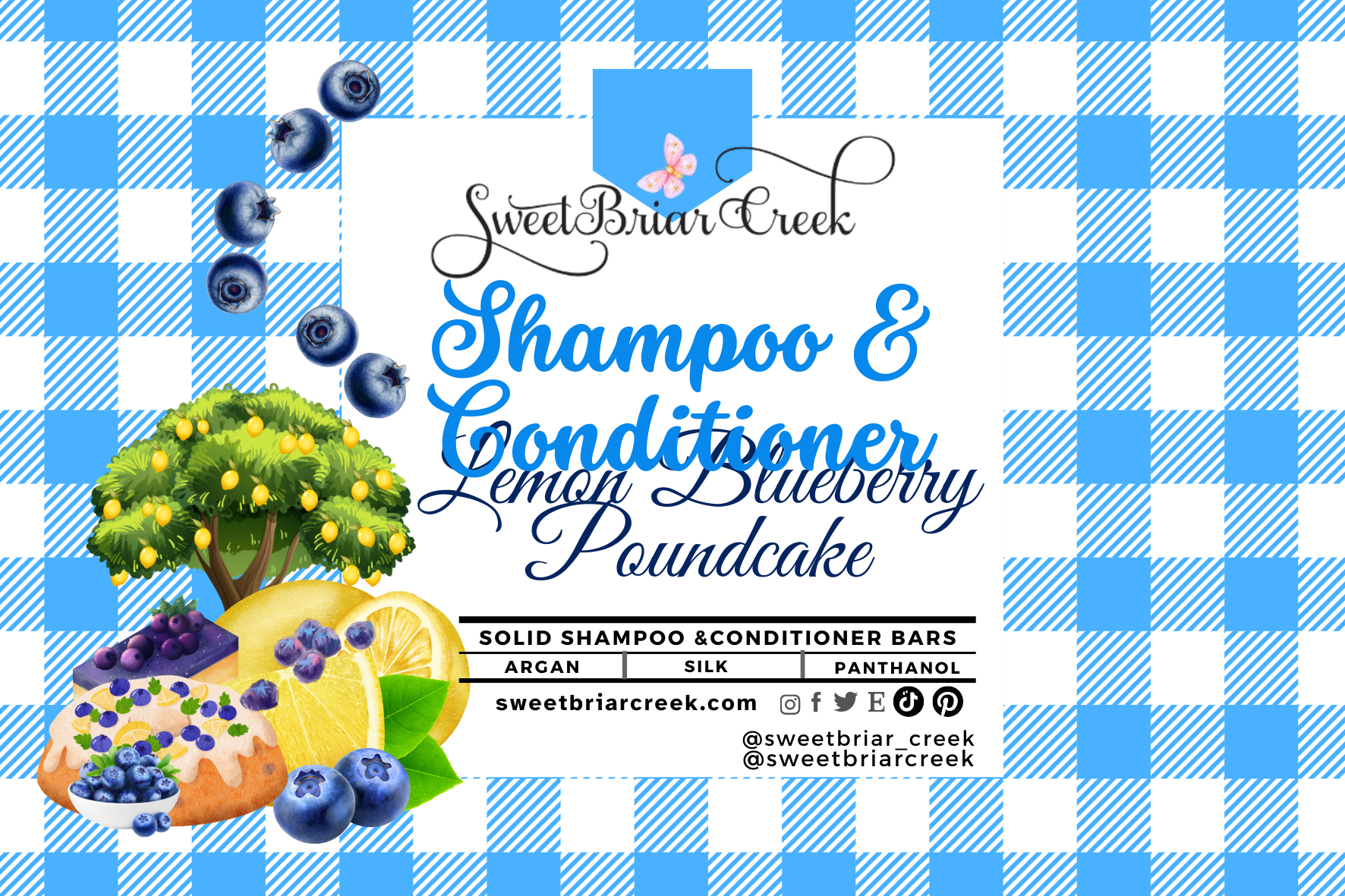 This wonderful baked aroma begins with zesty lemon rinds, Tart Blueberries rounded out with buttery yellow sponge cake, toasted coconut, smothered in buttercream frosting