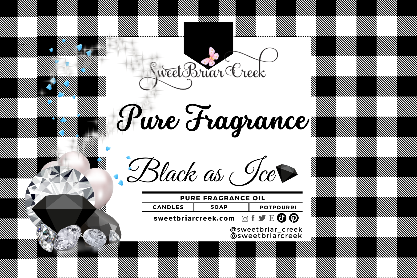 Black Ice- Clean, and citrusy fresh top notes with middle notes of Lavender. Lily of the Valley & Jasmine finished off with added touch of  mossy, woody, musky and ambergris  bottom notes