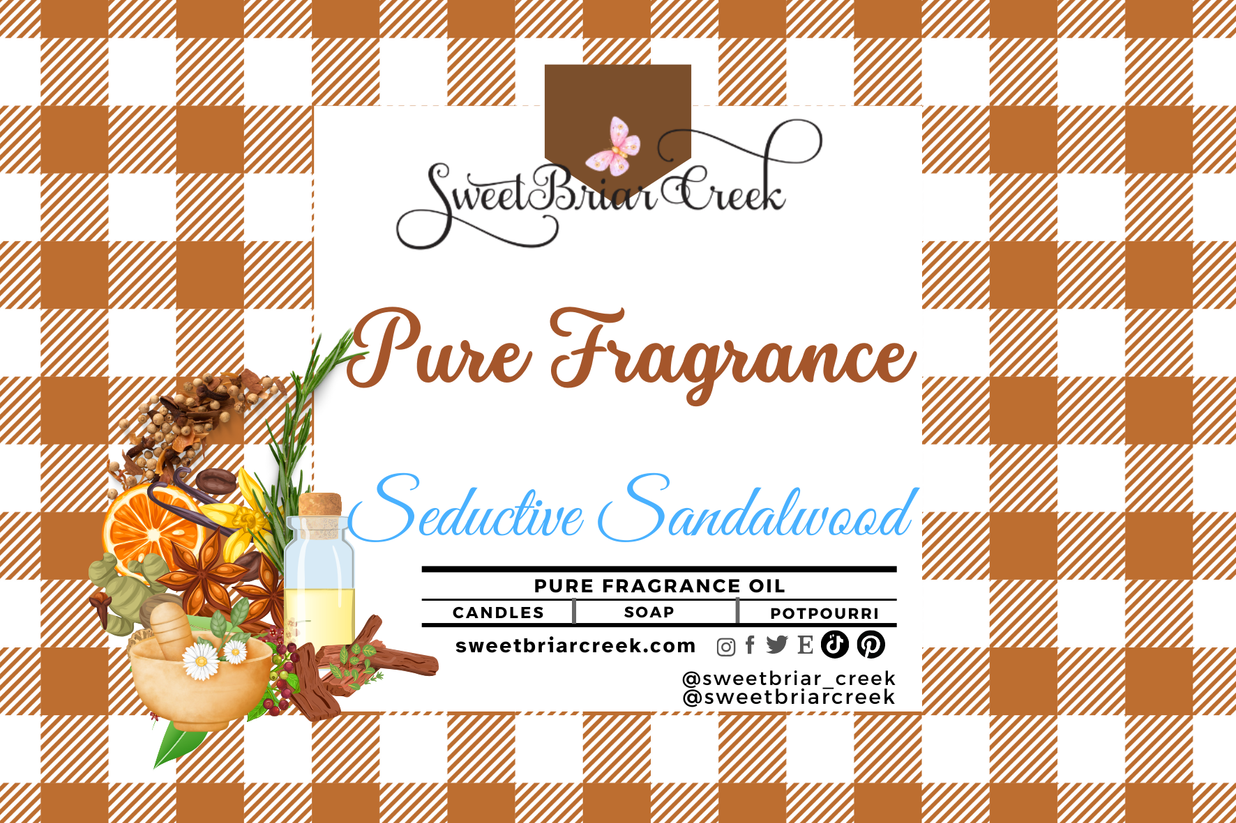Seductive Sandalwood- A woodsy sensual blend of sandalwood and patchouli with amber, cardamom and ginger.