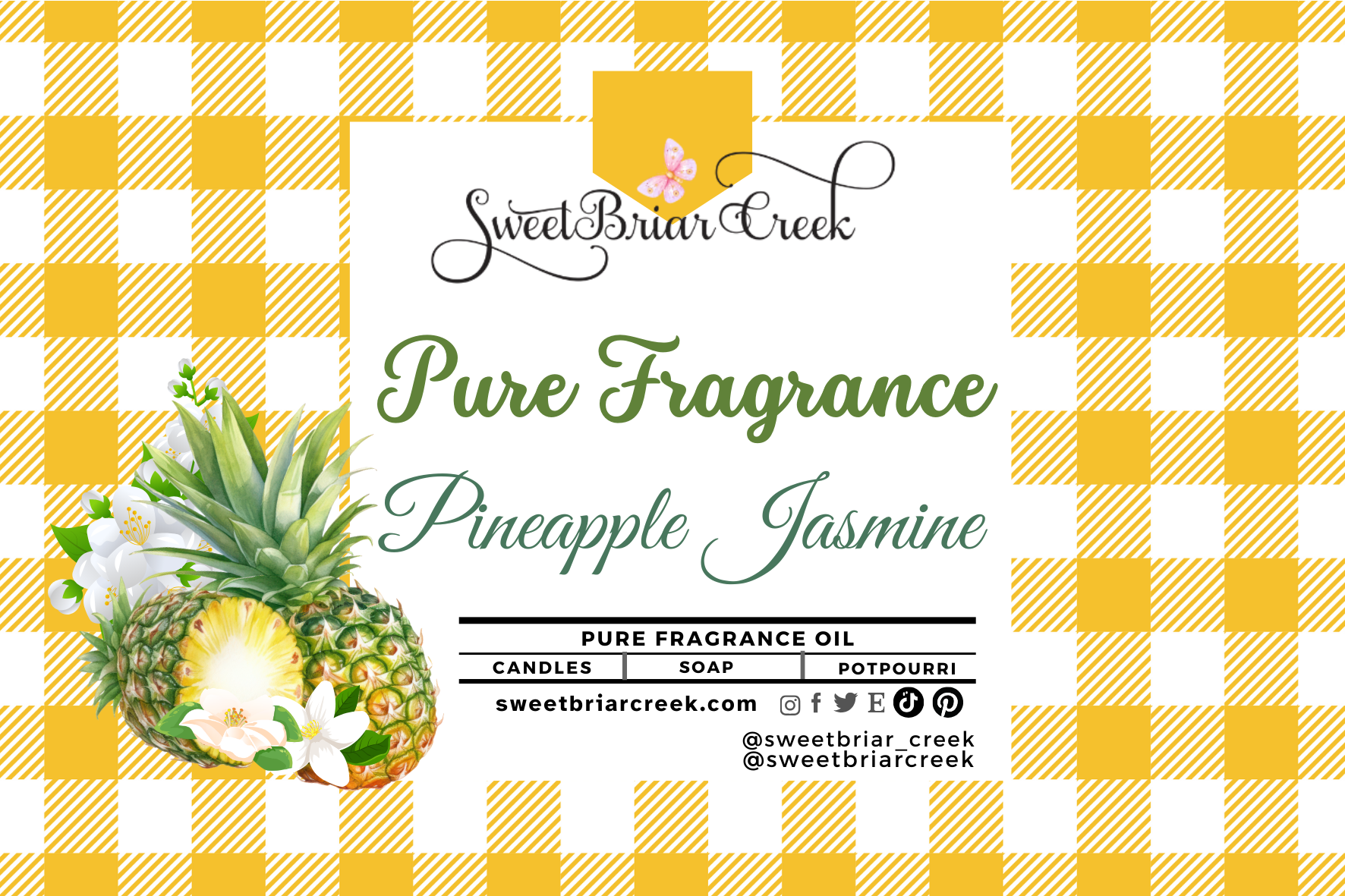 Pineapple Jasmine A creative blend of top notes of ripened pineapples, pears, and apples; middle notes of ferns and clover; bottom notes of jasmine and rose petals.