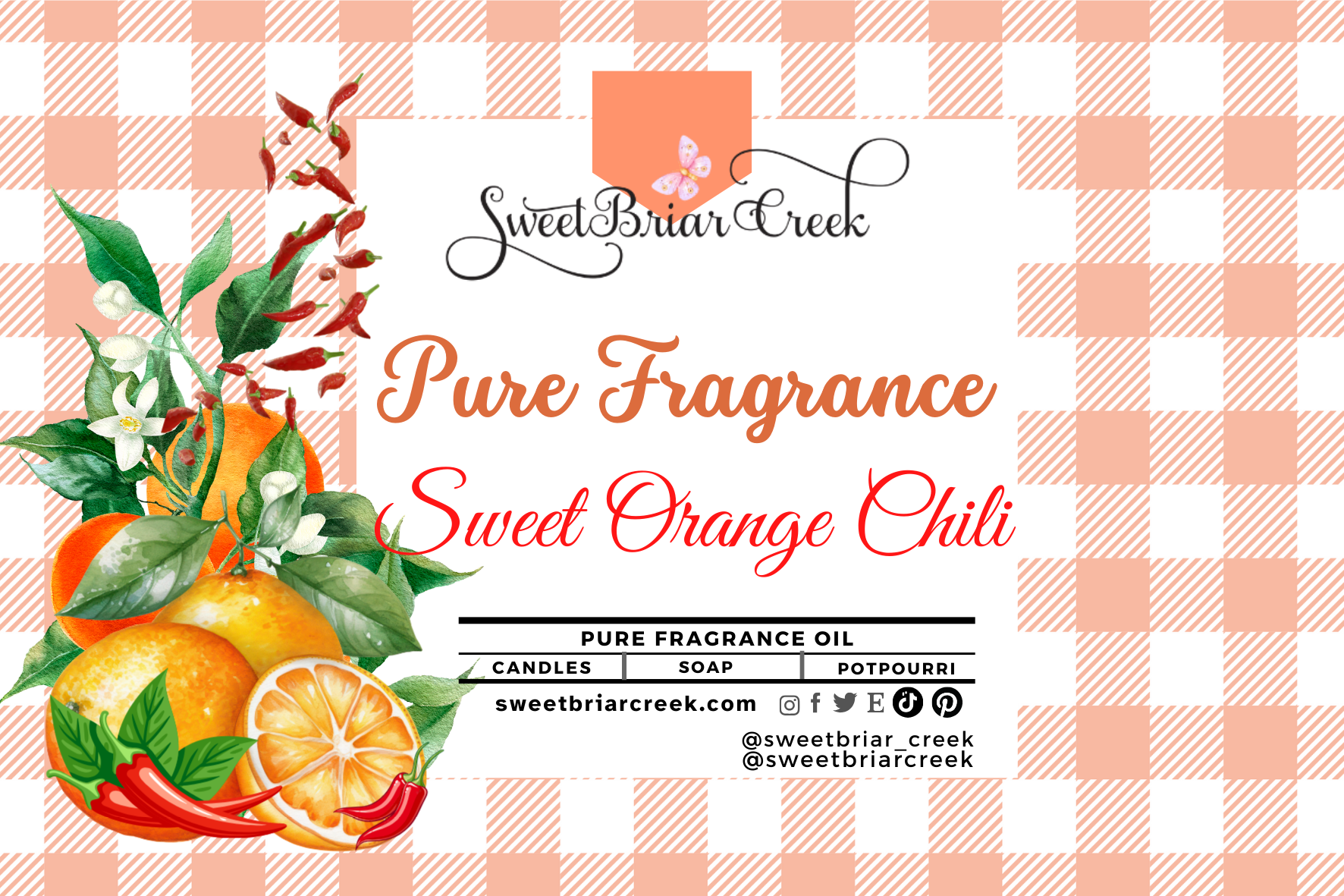 Sweet Orange Chili -Sassy, saucy combination of Valencia Orange, Sparkling Bergamot, Tangerine Zest, Tart Cassis, Orange Juice, Neroli, Ground Pepper, Fiery Chili Pepper, and Sheer Musk.